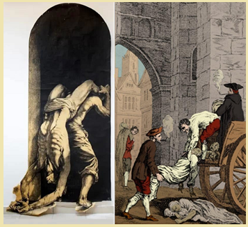 M. A. : Les autorités vont prendre des mesures pour repérer et faire l’inventaire des familles infectées. Par décret, elles sont allées chercher des indigent(e)s, des miséreux venus des bas-fonds londoniens qui seront payés (misérablement mais c’est une première pour eux). Leur travail ? Entrer dans les maisons du cœur de Londres, établir l’inventaire des membres infectés et si infectés il y a, interdire à tout occupant de sortir. De plus, sur la porte est peint une croix rouge pour signaler la maison touchée. Pour l’enquêtrice, le pouvoir (et chantage) devient soudain exorbitant.