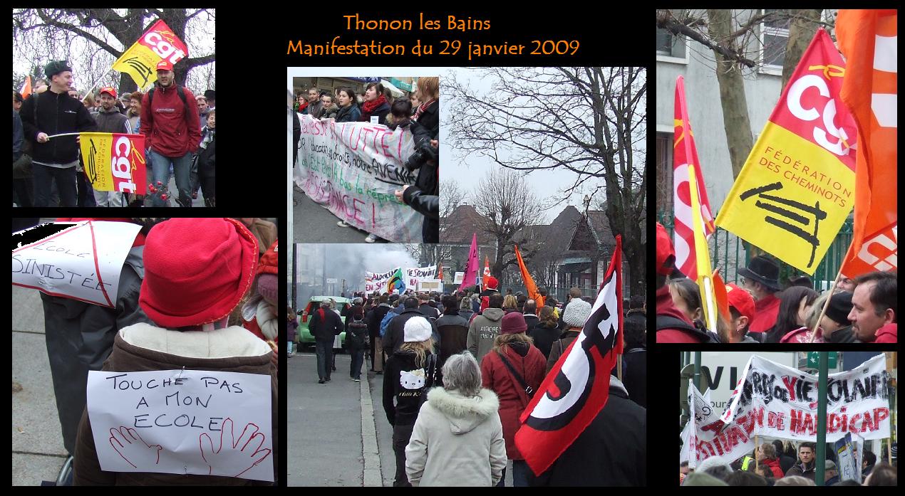 A Thonon-les-Bains, c’est un froid qui pique ce matin. Mais dans le défilé, on peut compter sur le personnel hospitalier pour réchauffer l’atmosphère. Si on veut gagner plus, ce ne sera pas pour aujourd’hui car les salariés du Casino d’Evian, présents avec leurs banderoles, ont déserté les tables de jeu. Les enfants des professeurs et des parents d’élèves sont là aussi, entourant les instituteurs du Public et du Privé. Le Handicap a déployé sa bannière pour se refaire une santé et les Services Sociaux sont clairement du côté des Usagers qu’ils accompagnent le reste de l’année. A la tête du rassemblement, les lycéens aux porte-voix de l’UNL battent la mesure en chefs d’orchestre. Un bon millier de personnes avance Rue Jules Ferry, passe devant la Mairie en houspillant le Chef de la Cité thononaise, garé à droite, puis le serpentin revient Place des Arts, départ et terminus. Certains poursuivront la Manifestation à Annecy l’après-midi. La France et la Haute-Savoie remuent en profondeur. Il reste que le mécontentement devra se traduire sur la Scène politique. Les syndicats ont montré la voie de l’Unité pour rendre visibles les revendications sectorielles et toutes celles qui touchent au pouvoir d’achat et à l’emploi. BiBi attend toujours les commentaires de Martine Aubry, de Ségolène Royal étonnamment discrets sur ce coup-là.